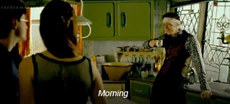 Oliver Phelps (George Weasley): É quando o Harry e a Ginny se estão a beijar e o George aparece por trás e diz: “Morning!” - Deathly Hallows: Part 2